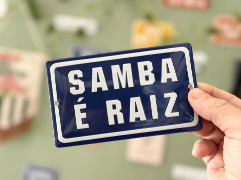 Placa de metal esmaltada com furos nas laterais. Dimensões: 15x9cm. Por ser um produto artesanal, podem ocorrer pequenas variações de tamanho e acabamento. Podem ocorrer pequenos pontos na peça que são características do processo produtivo. PRODUTO FABRICADO MANUALMENTE.